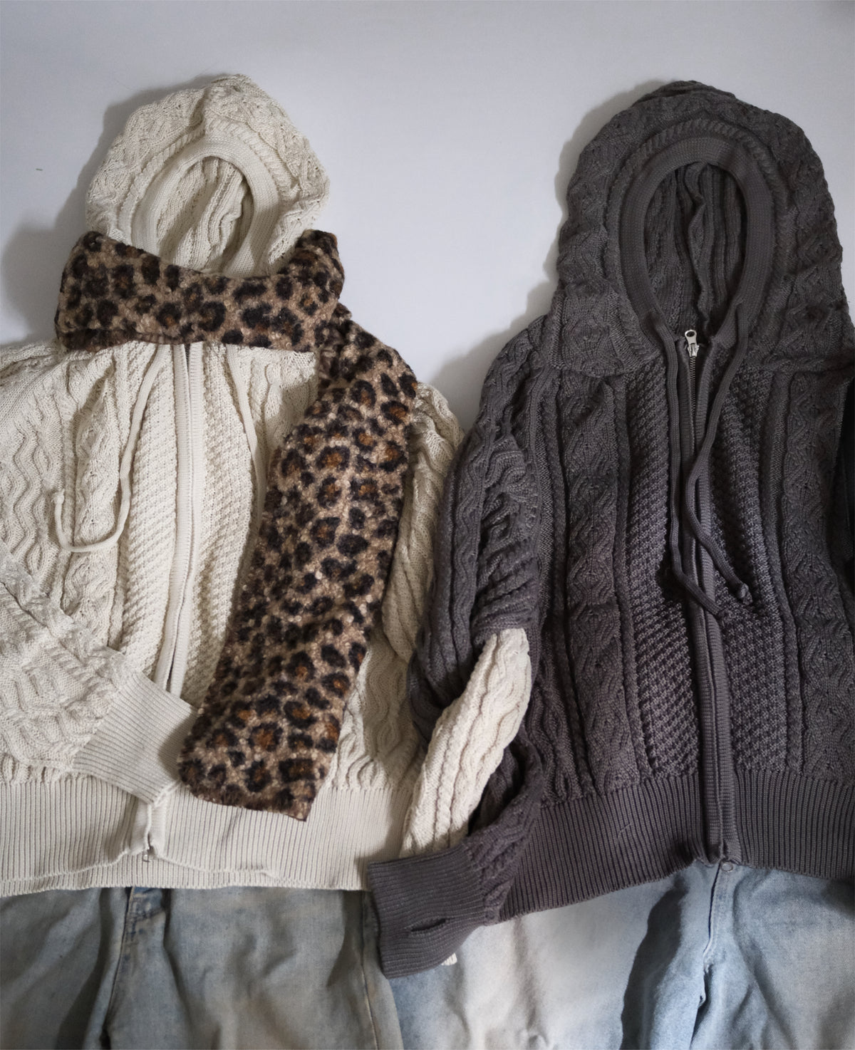 KR 毛毛䄂一字肩+小圍巾套裝